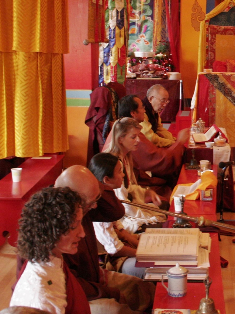 Losar or Tibetan New Year occurs in the winter or early spring, according to the lunar calendar. Losar day itself is preceded by three days of Vajrakilaya practice, to purify the negativities and obscurations accumulated during the previous year, and remove obstacles for the one ahead. These practices are currently being held at Orgyen Dorje Den, our sister center in Alameda. The day before Losar falls on the new moon and is set aside for house and temple cleaning. On Losar day, an abundant Vajrasattva puja and tsog ceremony is performed. This may also take place at Orgyen Dorje Den. Please check our calendar for details.